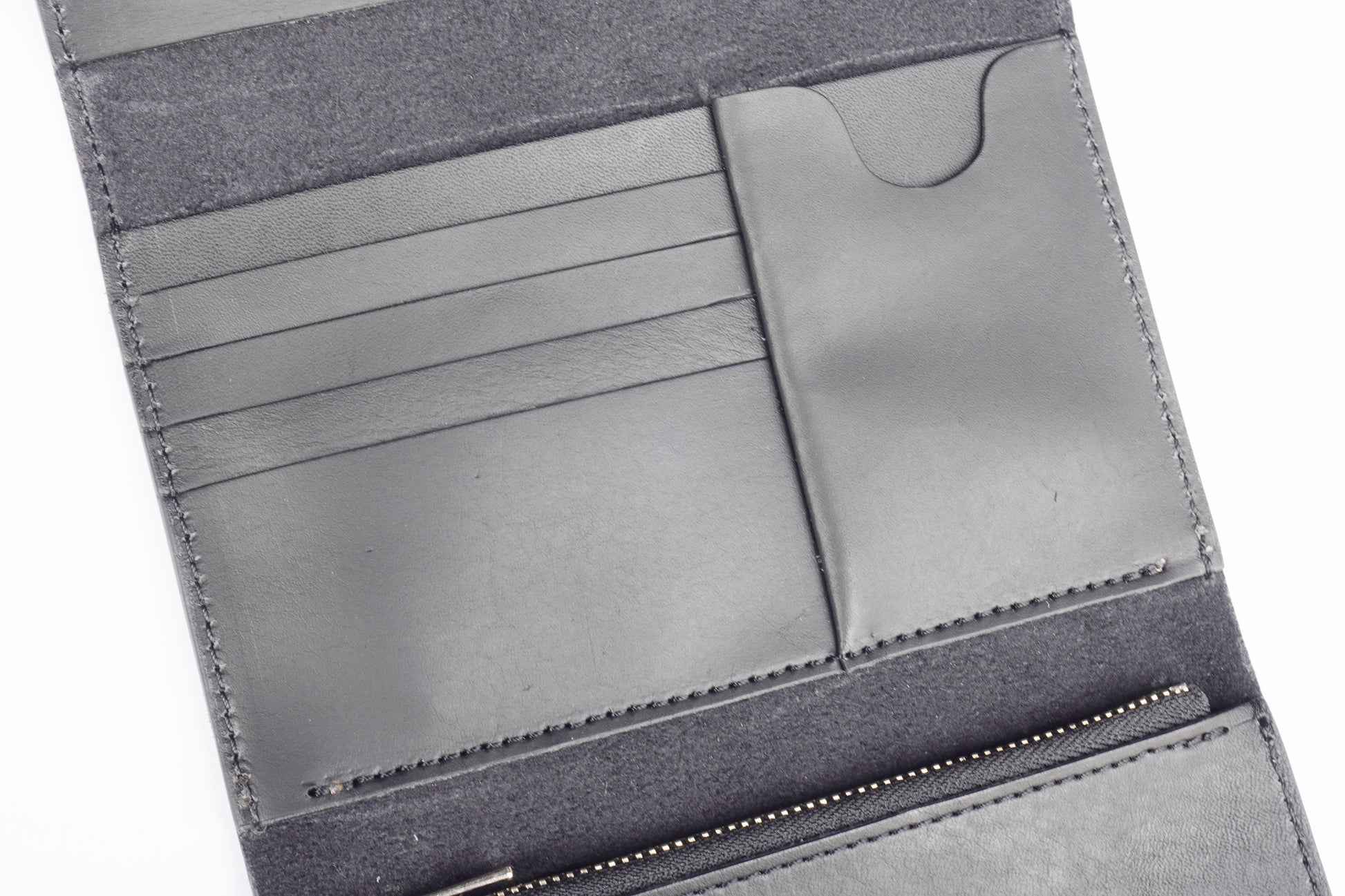 計5か所のカード収納とファスナー付きのコインケースが付属しており、使いやすさにも拘った一品。千円札が折らずに入るサイズの札入れ部分も付属します。