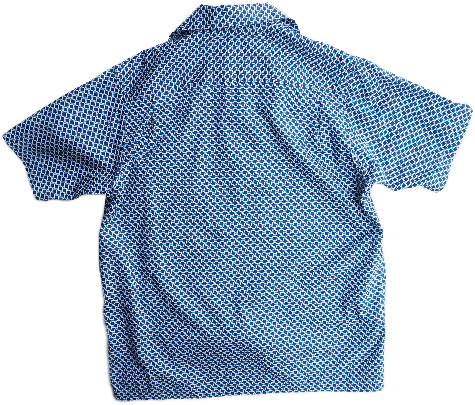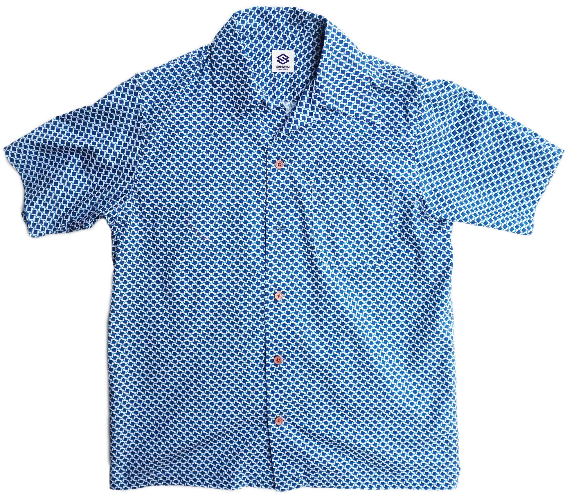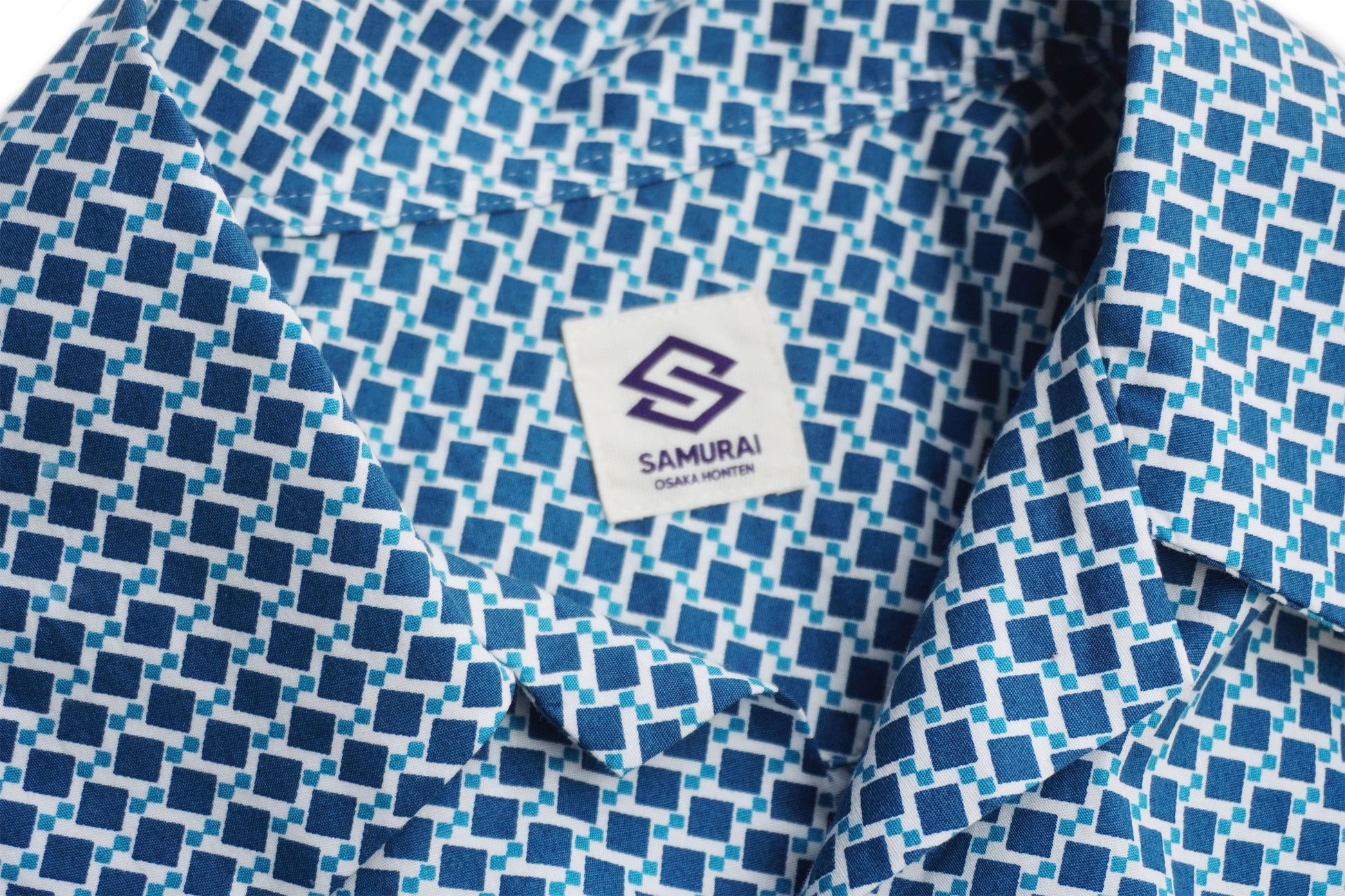 綿100%の和柄生地を使用したオープンカラー半袖シャツ