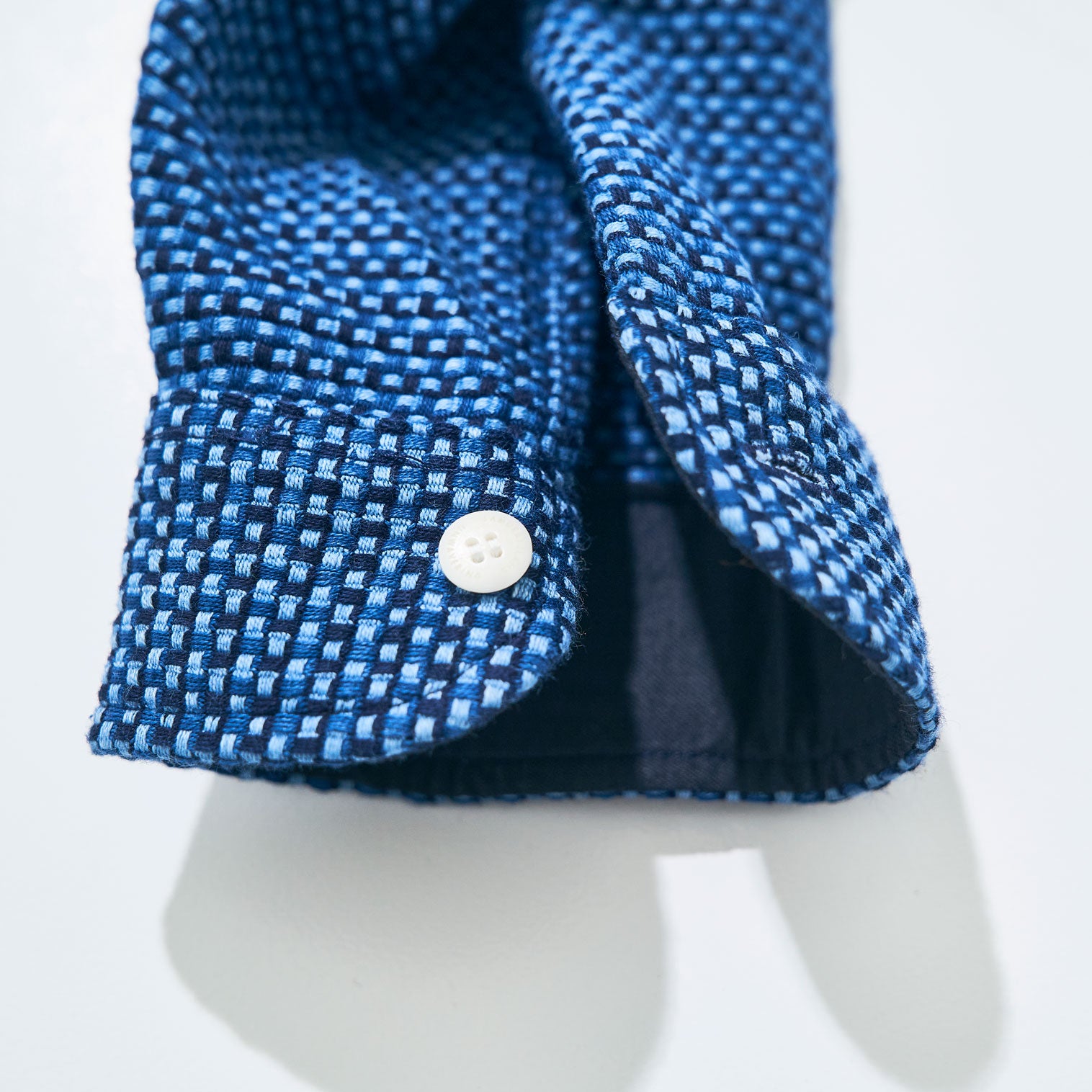*藍の枷染め(手染め)の糸による生地の為、色の濃淡等のムラが見られる場合がありますが、これは本製品の「味」としてご理解をお願い致します。