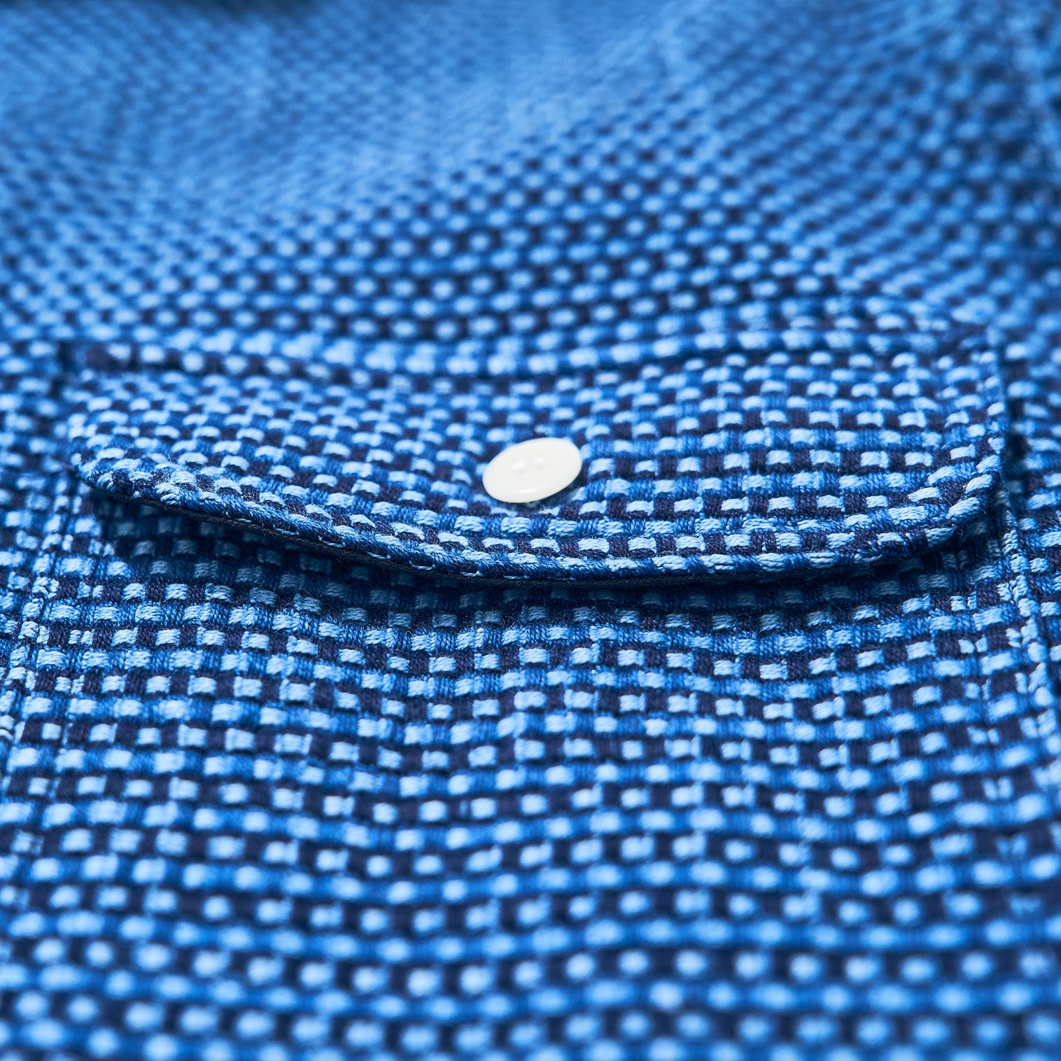 藍染め太オックス生地によるワークシャツです。表生地は、藍、浅葱、水浅葱の3色の糸で構成されており、染めと織りを一貫して行う染織工場だからこそ生み出すことができた藍染の生地です。シャツはビンテージワークの要素をふんだんに取り入れたデザインです。長年の着用を考慮して縫製はトリプルステッチ巻縫い中心の堅牢な仕様です。