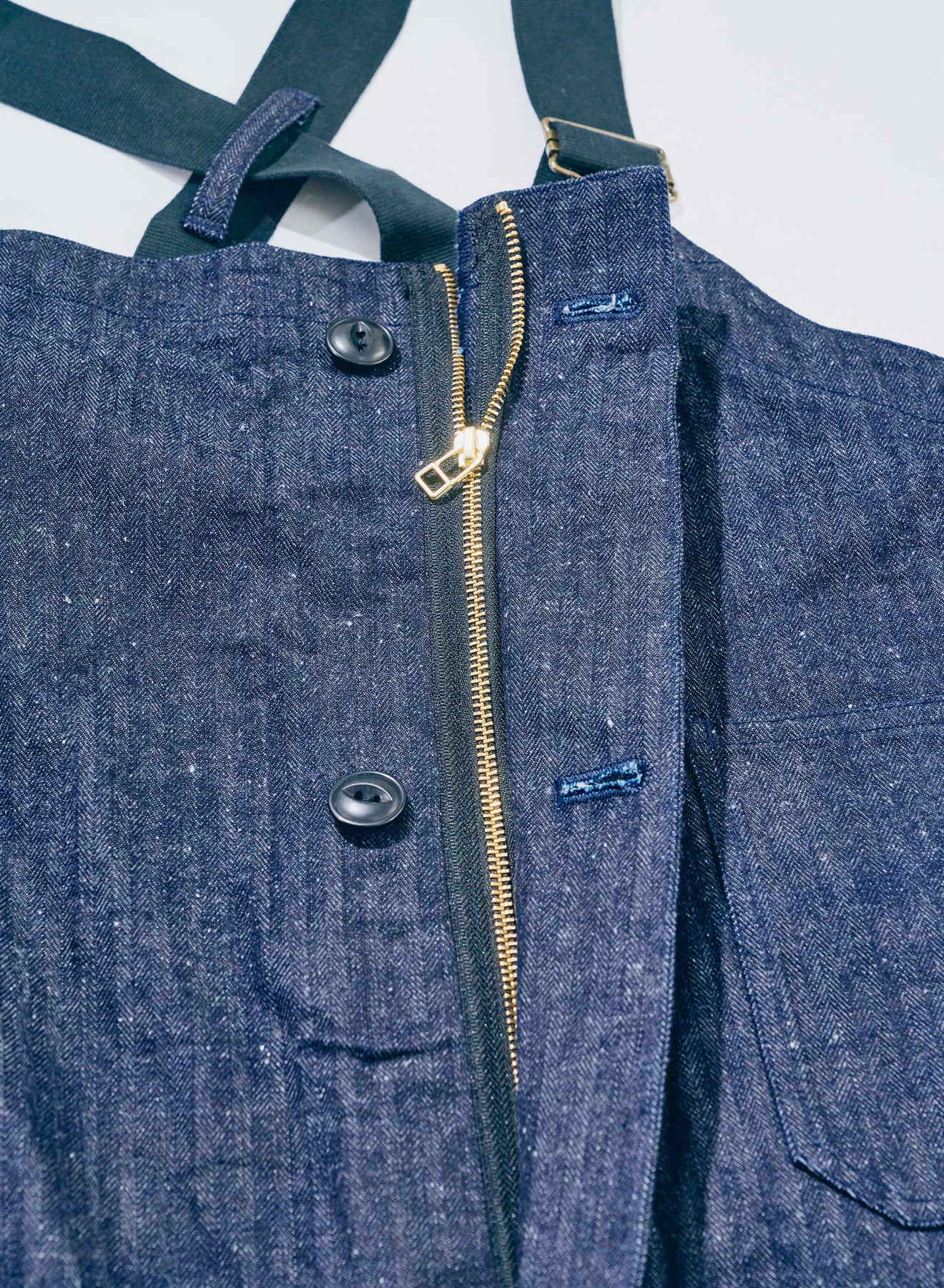 The fabric is a 13oz SWC original herringbone denim in four colors: indigo, black, oatmeal, and olive, using gray yarn with neps in the weft. These colors are dyed with indigo and sulfur dyes, so you can expect some awesome fades. The waist and thighs are slightly loose-fitting for comfortable outdoor wear.