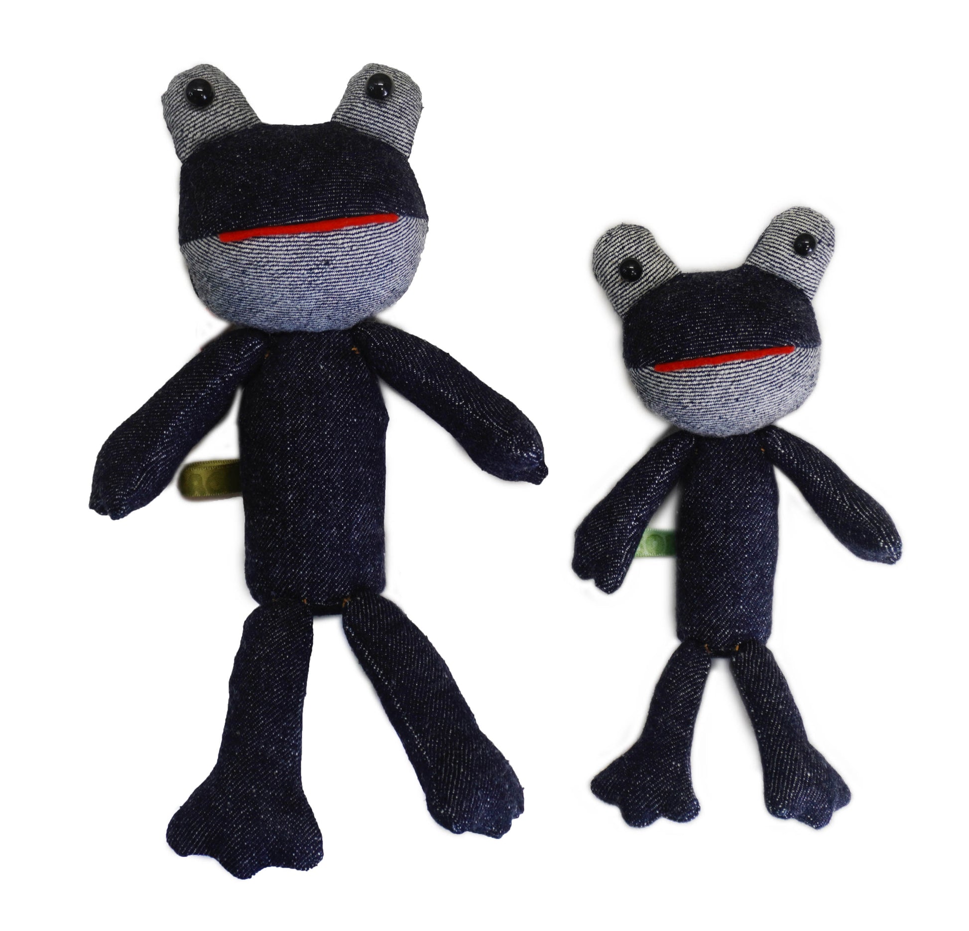 サムライオリジナルデニム生地を使ったカエル人形です。1点もののハンドメイド製品で、一つ一つ表情が異なる点も魅力の1品です。背中部分とカラビナに加えて、おしりにマグネットが入っているので座らせてディスプレイする事も可能です。背中部分とカラビナを使えば、お手持ちのバッグに掛ける事や車内のインテリアとしてもお使い頂けます。