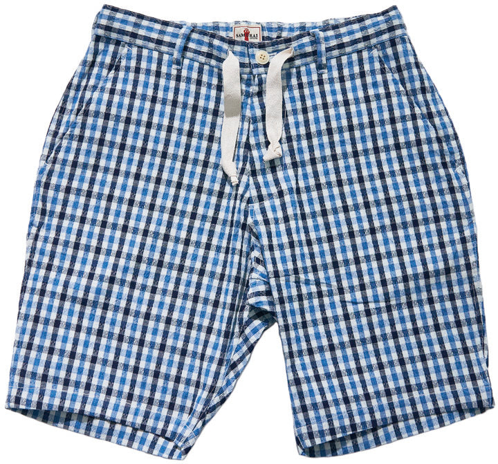 SJSP25-CS 藍刺し子ギンガムチェックイージーショーツ